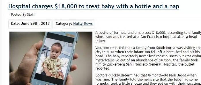 最近一位韩裔小男孩就因为在美国洛杉矶一医院看了一回病,几乎没做特别检查,就在医院呆了一晚,喝了几口奶,竟然让他的父母收到了近2万美金的账单,天价账单简直快让这对韩裔夫妻破产的节奏呀!