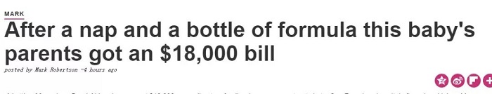 是的,你绝对没有看错,这名婴儿在医院打了个盹、喝了杯奶,他的父母就收了一张$18,836的天价账单!