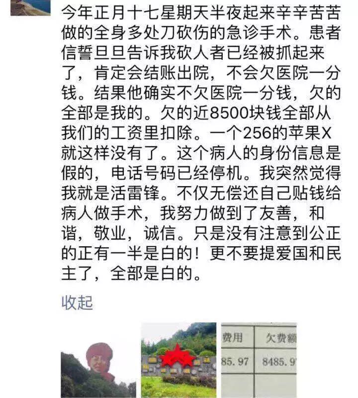 你别看这个社会病了,医院病了,可是我们医生没有病”。