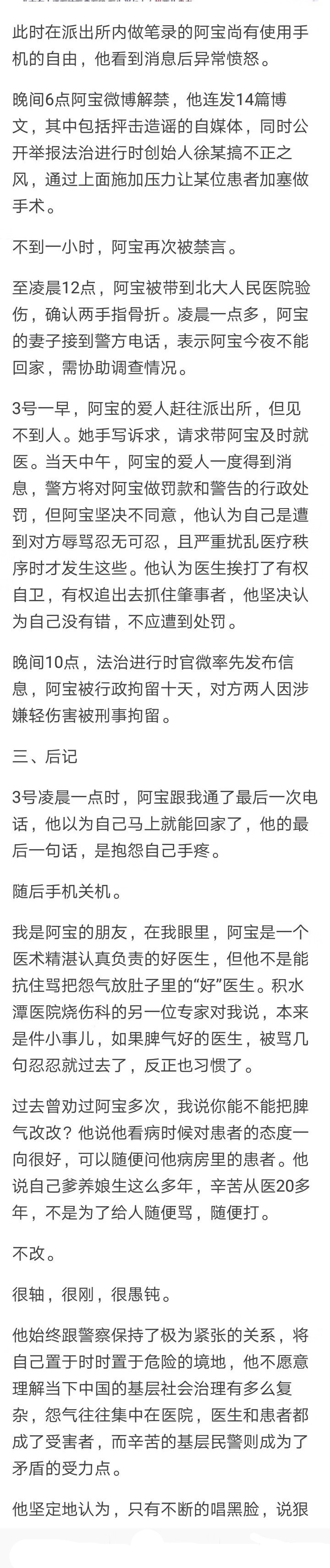 昨日,一个有点理想的记者发布了文章《那天,阿宝遭遇了什么》,文中有阿宝口述的事情经过,可是文章被很快删掉了。