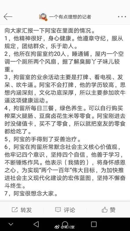 最后向大家汇报一下阿宝在里面的情况: