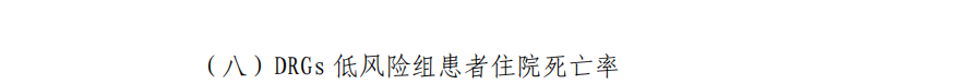 5.DRGs 低风险组患者住院死亡率 疾病本身导致死亡率极低的病例死亡率,年度运用 DRGs 分组器测算产生低风险组病例,其死亡率是指该组死亡的病例数占低风险组全部病例数量的比例。