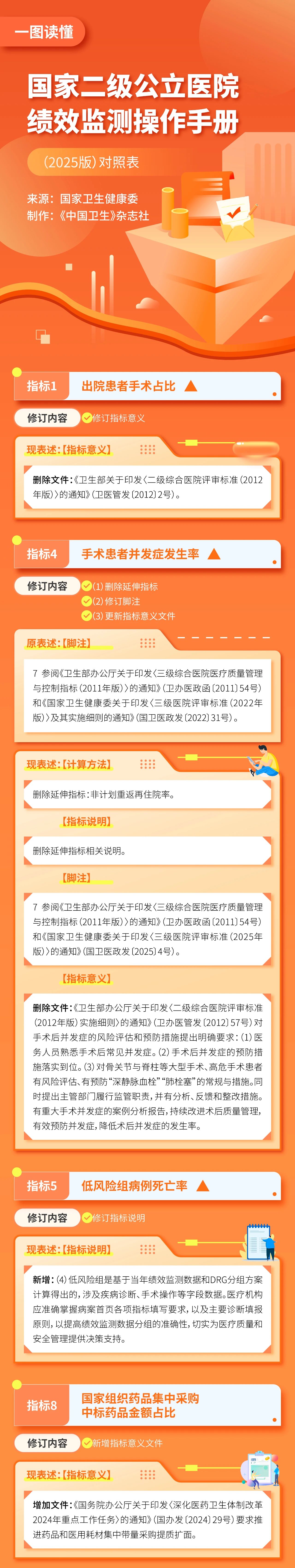 为持续提高二级公立医院绩效监测工作精细化水平,按照《关于加强二级公立医院绩效考核工作的通知》(国卫办医发〔2019〕23号)要求,根据实际工作需要和最新政策文件要求,我委对《国家二级公立医院绩效考核操作手册(2024版)》进行了修订完善,形成了《国家二级公立医院绩效监测操作手册(2025版)》(可从国家卫生健康委网站下载)。现印发给你们,请遵照执行。